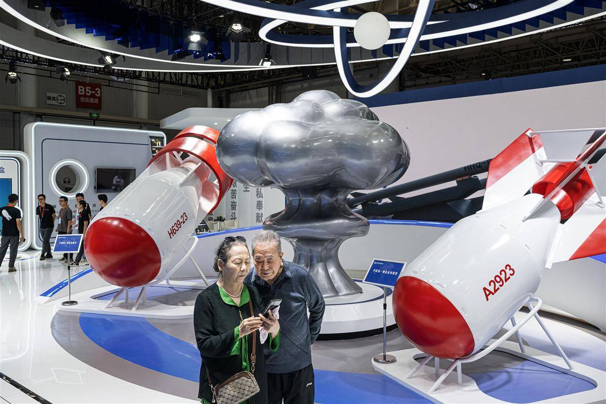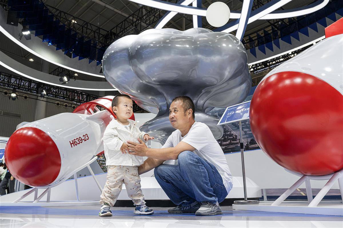 本届国防军工文博会将持续至10月4日,届时,市民可微信搜索“国防科技工业文化创意产业博览会”小程序,免费预约参观。(湖北日报全媒记者 任勇 摄)