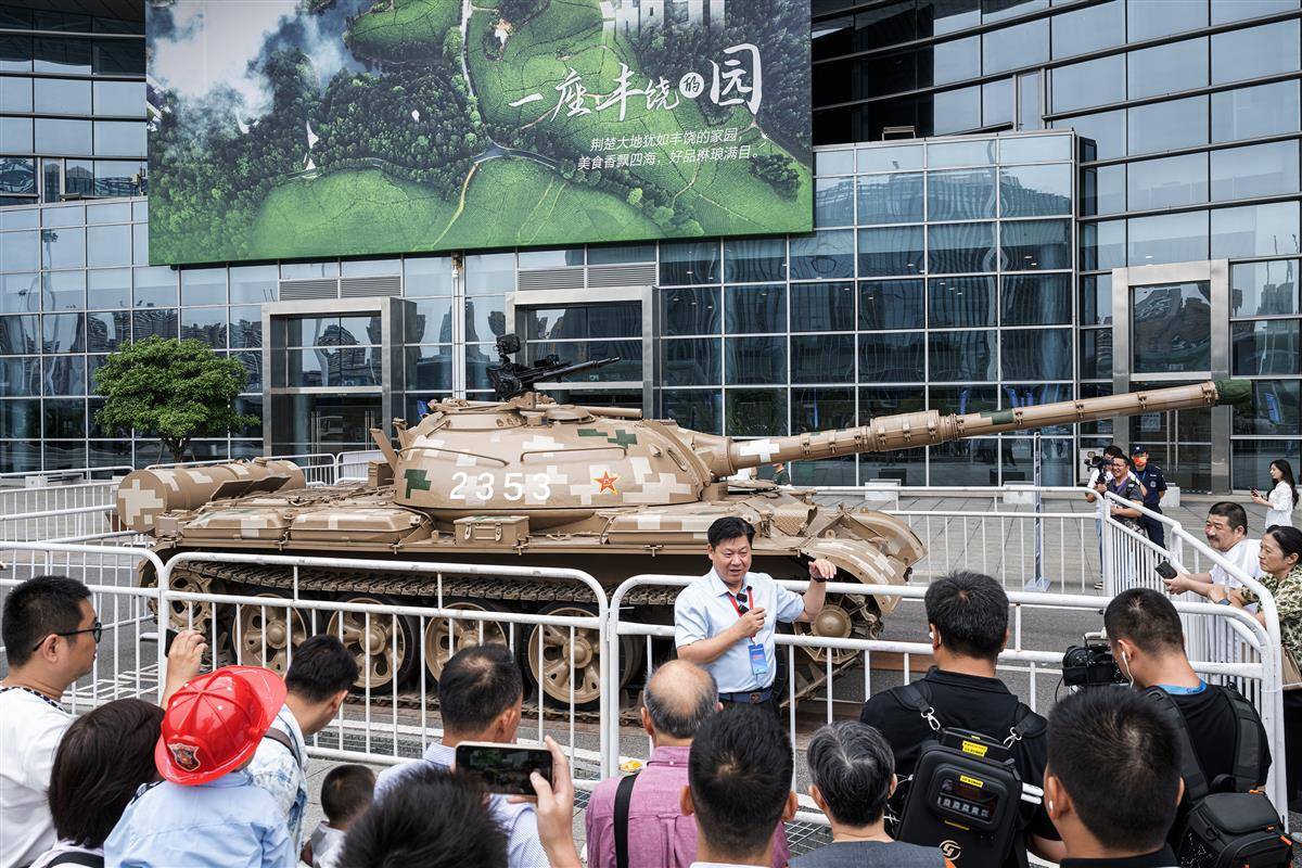 9月29日,79式坦克亮相武汉,吸引众多市民驻足围观。(湖北日报全媒记者 任勇 摄)