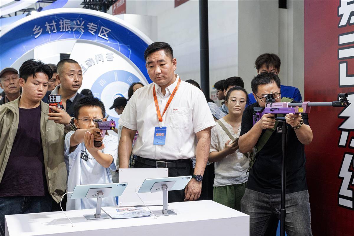 9月29日,市民在展会现场体验射击。(湖北日报全媒记者 任勇 摄)