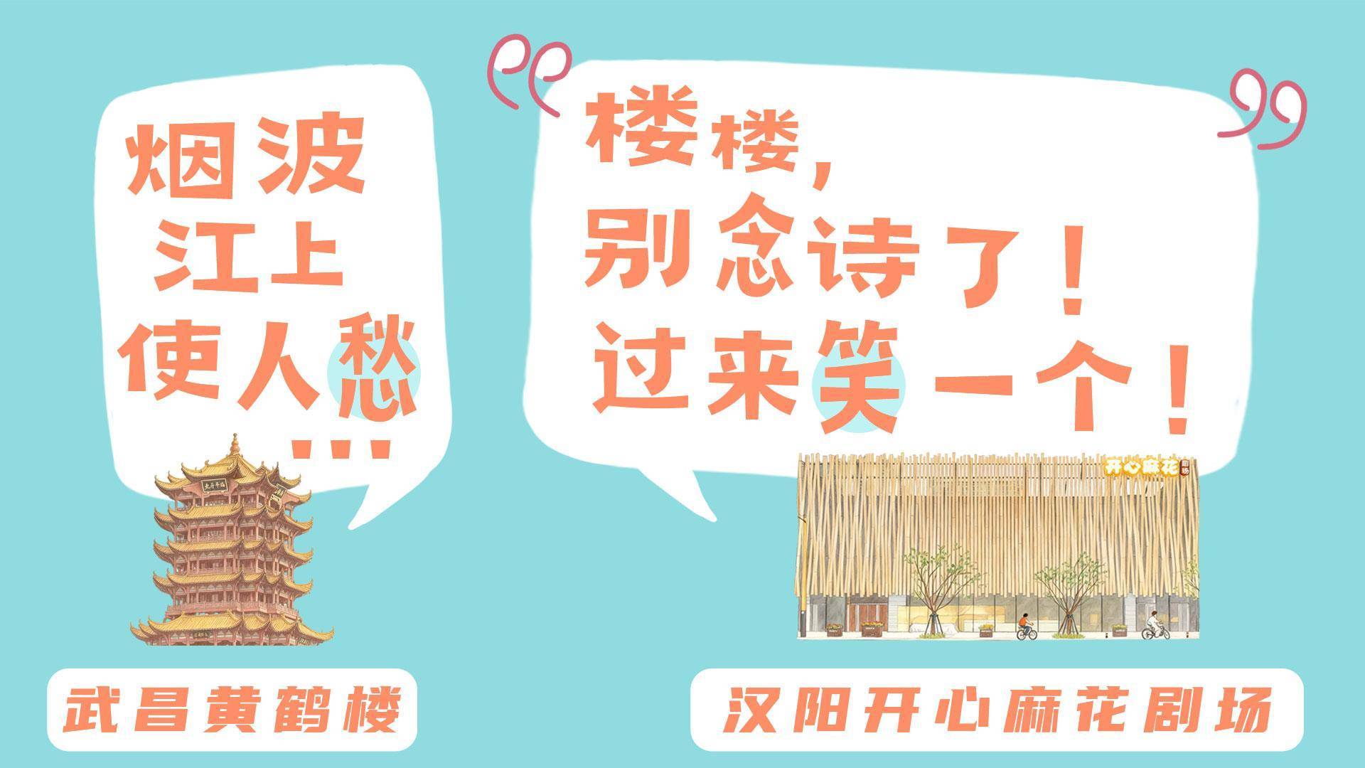 武昌黄鹤楼还在吟诵“烟波江上使人愁”,汉阳远洋里开心麻花剧场马上接梗:“楼楼,别念诗了!过来笑一个!”