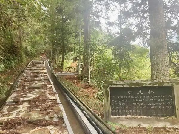 在龙岩市永定区湖坑镇南江村,一片宽约50米,长约2500米,混种着上千棵松树、山枣树的林子郁郁葱葱,从种下第一棵松树至今,已历经三百多年风雨,当地人称它为“女儿林”。
