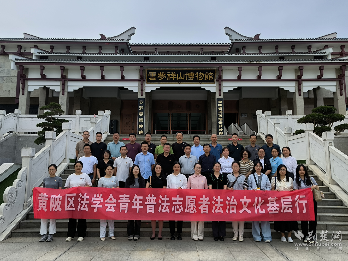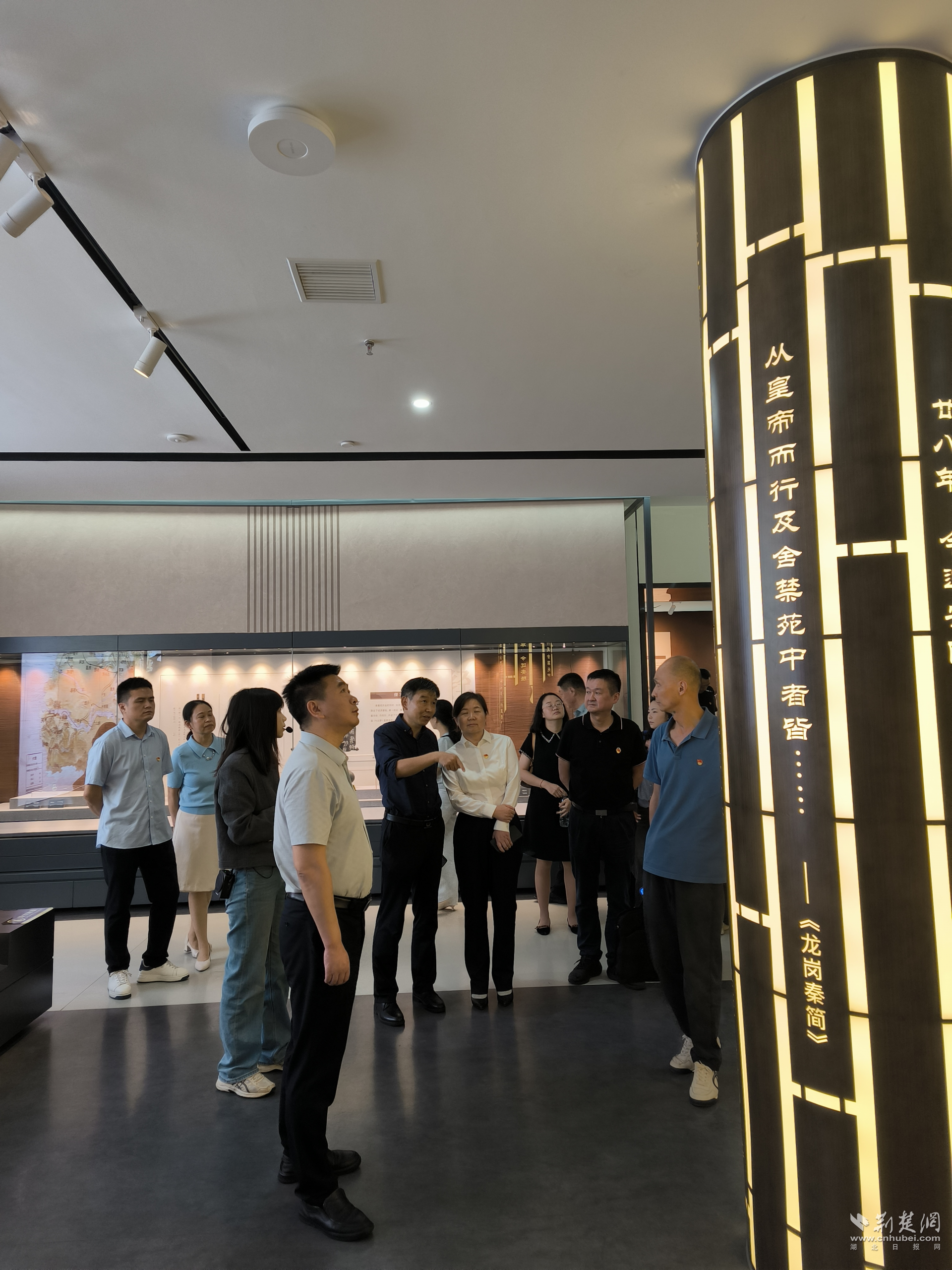 荆楚网(湖北日报网)讯( 通讯员 丁梦、高颖莉)为深入挖掘传统法治文化时代价值,汲取秦简中的法治智慧用于实践,9月28日下午,黄陂区法学会副会长兼秘书长、区司法局局长张远波带领黄陂区青年普法志愿者30余人,赴云梦博物馆参观学习。云梦县司法局党组成员、副局长毛洪波一行陪同参观交流。