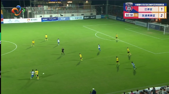 1:1!双方回到同一起跑线。然而稳住阵脚的光谷队,不久后即再以一脚远射,反超比分。上半场休息,光谷队以2:1领先进入下半场。
