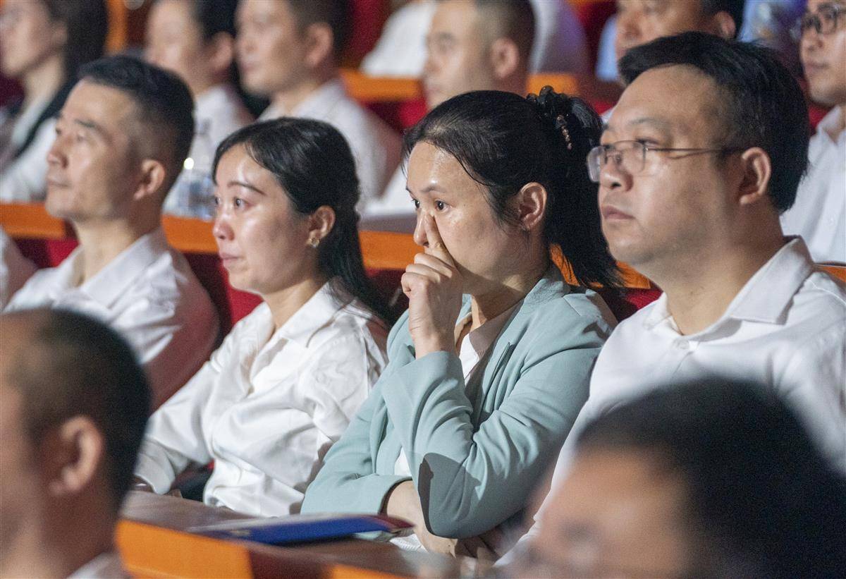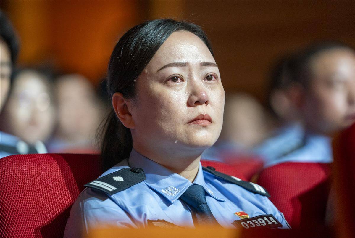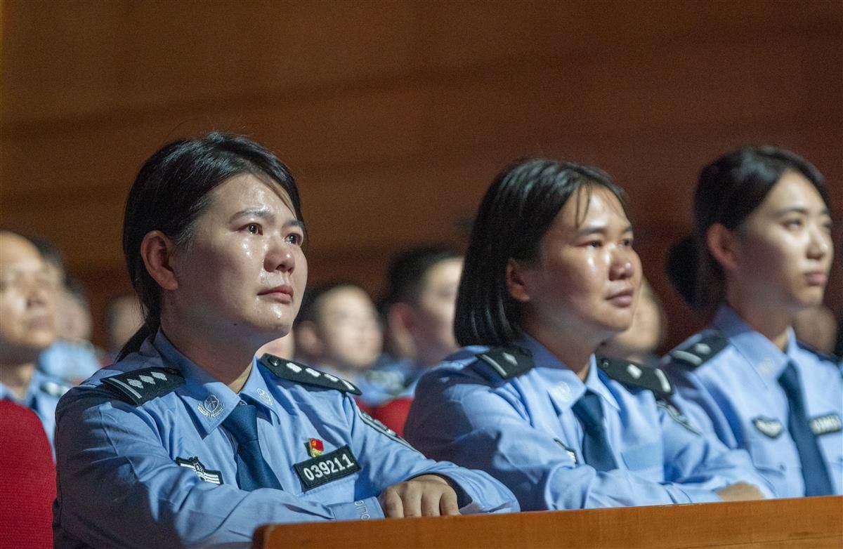 9月29日,因公牺牲的武汉民警万松同志先进事迹报告会在汉举行。来自湖北省各界群众和公安机关民警代表集中聆听英雄事迹,汲取奋斗力量。万松生前任武汉市公安局科技信息化支队三大队警务技术四级主任,曾先后荣立个人一等功1次、三等功5次。从计算机专业高材生成长为警队的关键智囊,他在技术岗位支撑协破重特大案件160余起。2025年5月26日下午,万松在岗位上突发疾病,经送医抢救无效,于次日不幸牺牲,年仅50岁。7月16日,中共湖北省委作出关于追授万松同志“全省优秀共产党员”称号的决定,号召全省各级党组织和广大党员干部向万松同志学习。(湖北日报全媒记者 魏铼 实习生 邓婷婷 摄)