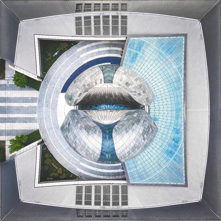 以空中视角聚焦城市建筑之巅——那些形态各异、匠心独运的屋顶。它们既是遮风蔽雨的实用构件,又是凝固的诗篇、跃动的音符,共同交织出建筑艺术的几何韵律。