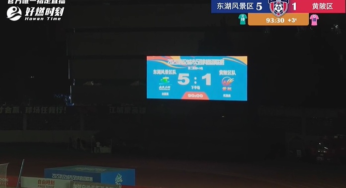 湖北日报讯 (记者黄磊、实习生张迎颖)9月29日19:00,2025“汉超”联赛城区组排位赛在洪山文体中心体育场激烈开赛,东湖风景区队主场迎战黄陂区队,最终以5:1的比分战胜黄陂区队。