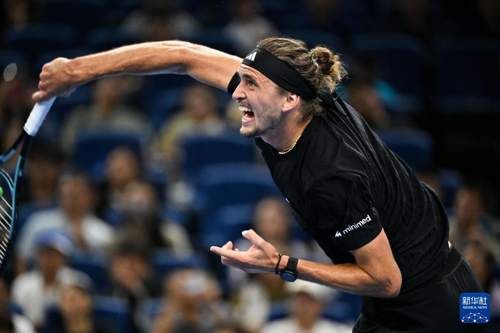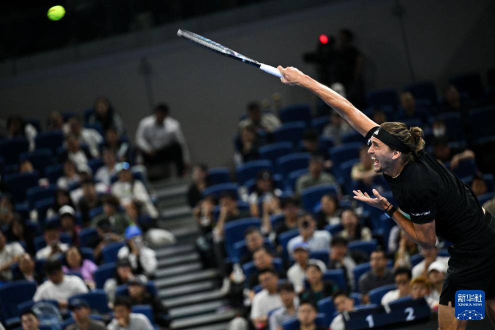 9月29日,兹维列夫在比赛中发球。