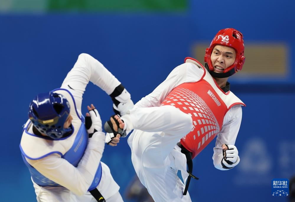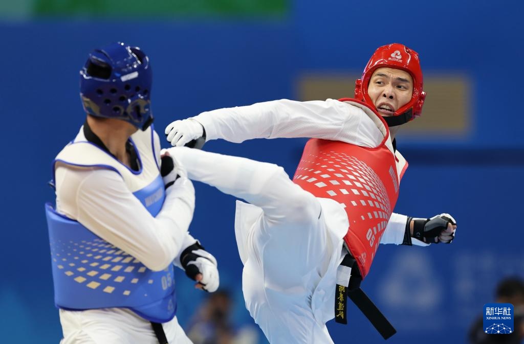 当日,在广东惠州举行的第十五届全运会跆拳道男子80公斤以上级决赛中,广东队选手王要锡战胜山东队选手刘朝阳,获得冠军。