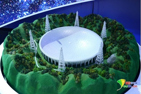 “如果把天眼比作观察宇宙的眼睛,馈源舱就是那枚精准捕捉光线的眼球。”在西安电子科技大学博物馆,500米口径球面射电望远镜(FAST)的微缩沙盘与背景的璀璨星空相互映射,引发人们的无尽遐想。