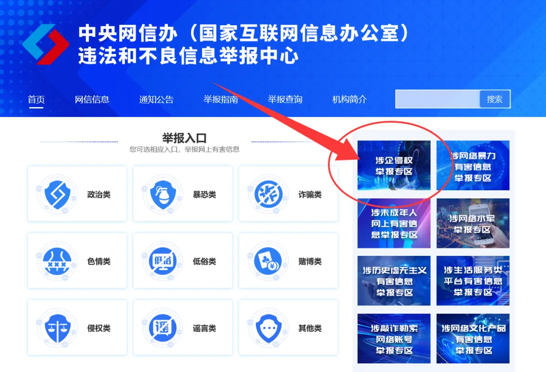 2.登录www.12377.cn举报平台“涉企侵权举报专区”;