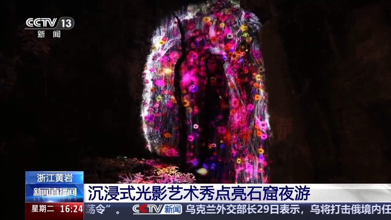 在浙江黄岩石窟,沉浸式光影艺术秀让游客化身光影探险家,感受独特的石窟艺术。
