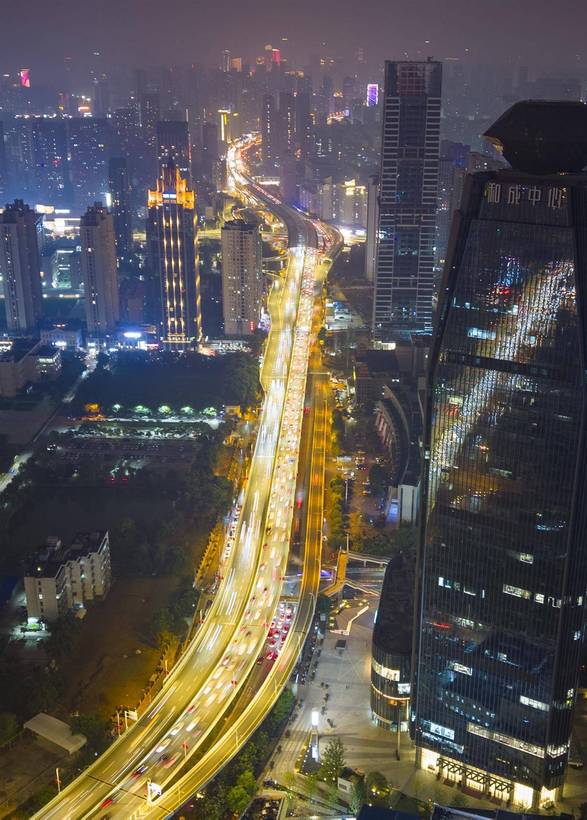 图为雄楚大街尤李立交,车流密集。