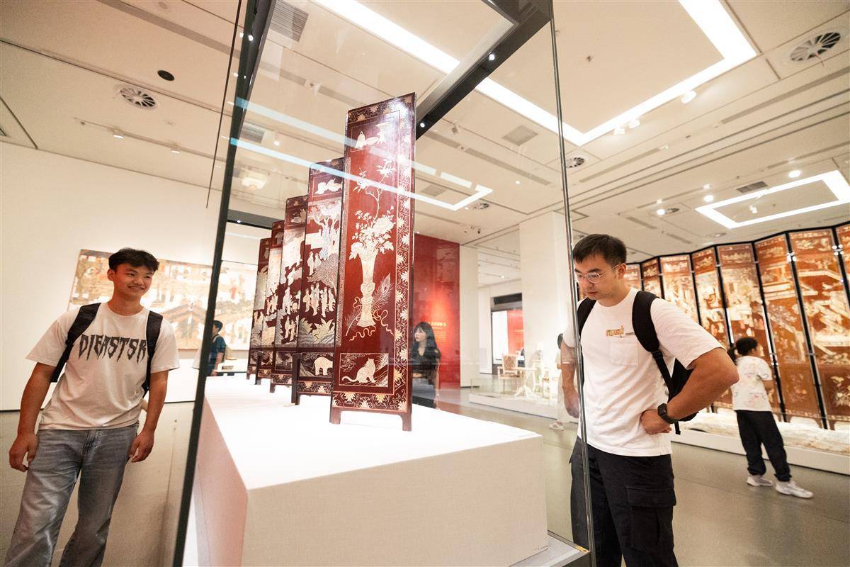 2025年10月1日,“十一”小长假首日,湖北省博物馆“光彩于文——中国漆器艺术”特展展厅内游人如织,大批市民游客前来观展。据了解,该展是继去年在旧金山联合主办“凤凰故国——青铜时代曾楚艺术展”取得空前成功之后,湖北省博物馆和美国旧金山亚洲艺术博物馆再度联手重磅推出的特展。展览分“千文万华”“漆韵新声”“古漆焕彩”三个部分,展示了中国古代漆器艺术、当代大漆艺术及出土木漆器的保护和修复。作为展览重头戏的中国古代漆器艺术部分,以工序分类,通过素髹、彩绘、金饰、雕漆、螺钿、款彩等髹饰工艺来系统展示中国古代漆器的工艺特点和艺术风格。展览共展出中国古代漆器及当代漆艺作品共180余件/套。为推动文明之间的交流互鉴,展览特引进了一批美国旧金山亚洲艺术博物馆藏漆器精品。亚洲艺术博物馆珍藏漆器共300余件/套,此次精选81件/套宋元明清时期的漆器精品来汉展出。这批漆器制作精良、工艺精湛、类型丰富,其中不乏张成款剔红栀子花纹圆盒等罕见精品。(湖北日报全媒记者 何宇欣 通讯员 黄敏 摄)