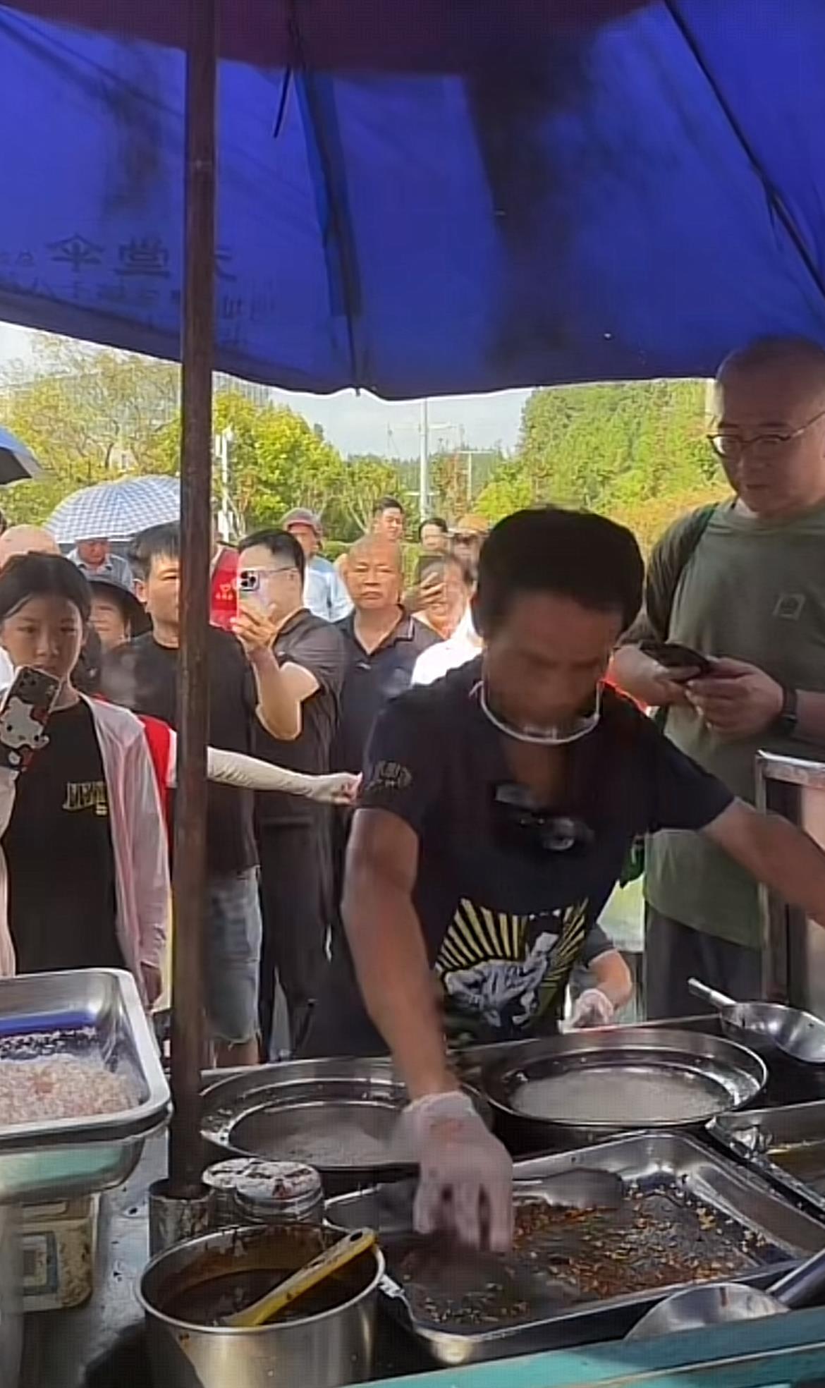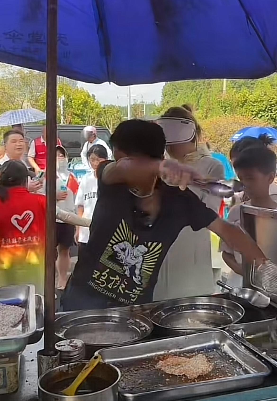 极目新闻记者从直播中看到,现场有志愿者手牵手组成人墙维持秩序。“鸡排哥”此前曾在社交平台账号称自己10月1日提前到14时开摊,但是13时40分许,“鸡排哥”已经到达摊位,准备炸鸡排。