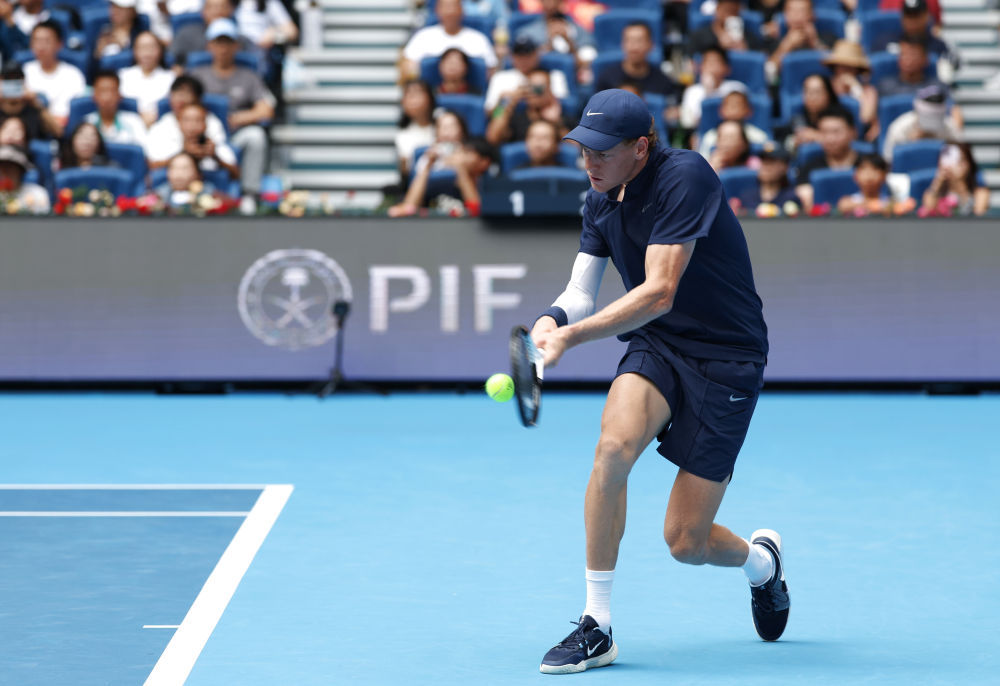 10月1日,辛纳在比赛中回球。新华社记者 杜昕怡 摄
