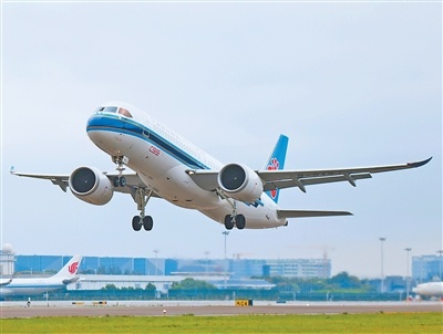浙江省杭州市,南航国产C919客机从萧山国际机场起飞,飞往广东广州。C919实现从首飞到首航,再到常态化商业运营,目前累计获得国内外订单超1000架。
