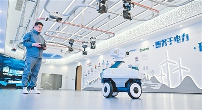在河北雄安新区雄安科创中心中试基地,一家科技企业的工作人员在调试巡检机器人。