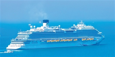 首艘国产大型邮轮“爱达·魔都号”驶向山东青岛邮轮母港。