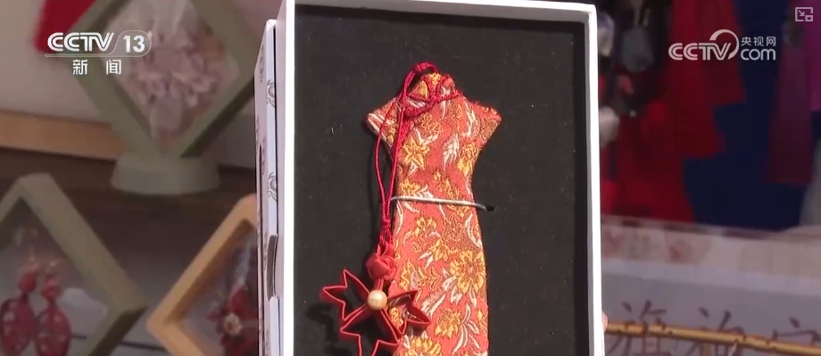 在非遗八大集市上,有许多精致的小物件,比如这枚小书签,别看它小,可是凝结了三项非遗技艺,包括京式旗袍传统制作技艺、京绣技艺,以及盘扣制作技艺,亮点多多,十分的精致。