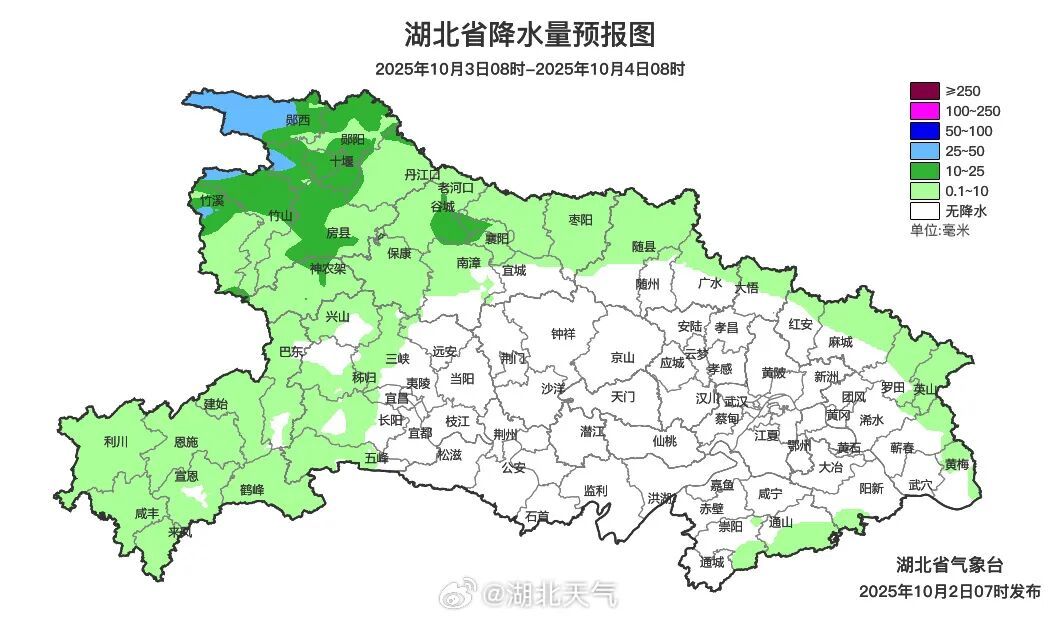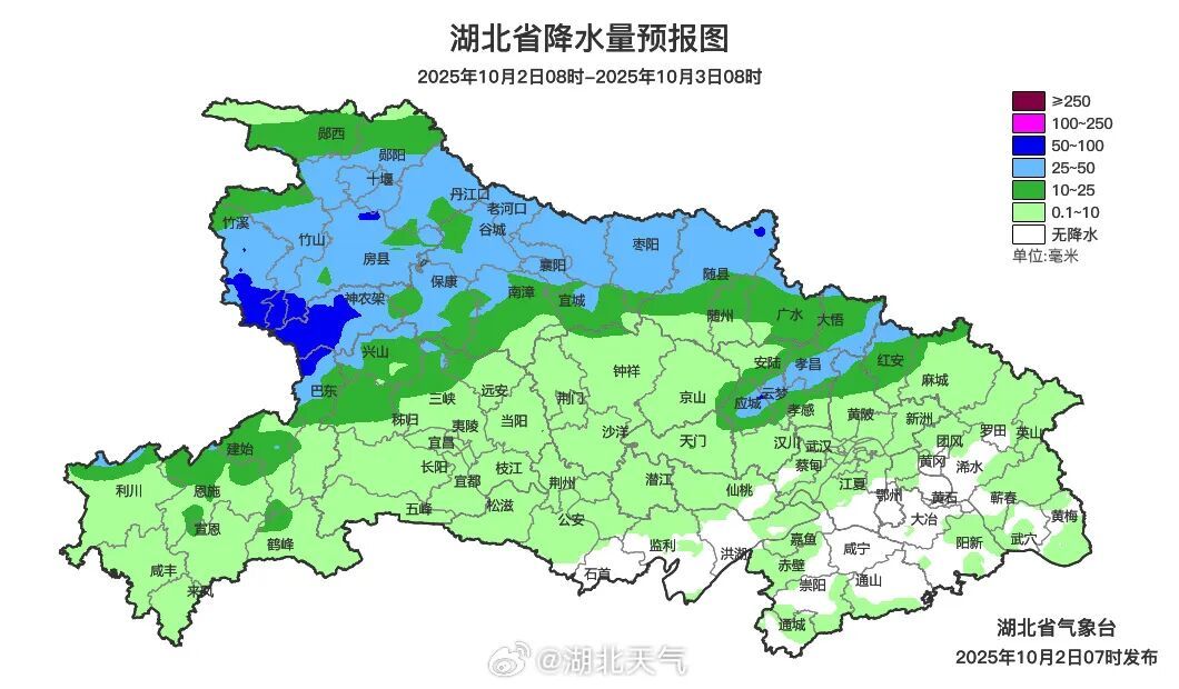 今天是国庆中秋假期第二天,我省西部北部较强降雨持续,鄂西北、鄂西南北部、鄂东北西部阴天有中到大雨,局地暴雨,其他地区多云到阴天,局地有阵雨或雷阵雨。