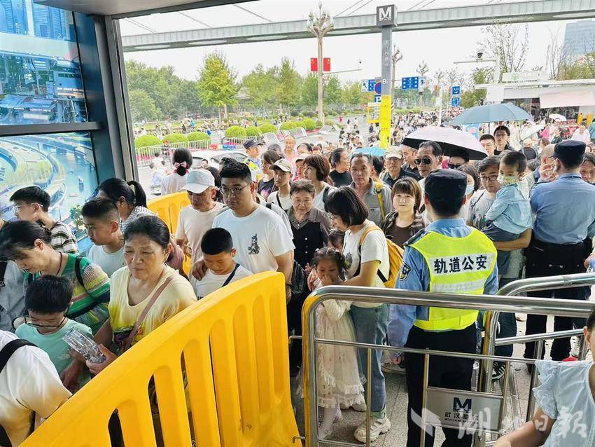 1日,光谷四路站客流首次超过10万人次,达到11.13万人次,光谷生物园达到4.35万人次;武昌站东广场站于9月30日、10月1日连续2天创下历史新高。当天客流集中时段,全线加开临客24列,地铁大运量公共交通的作用得到充分发挥。