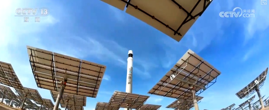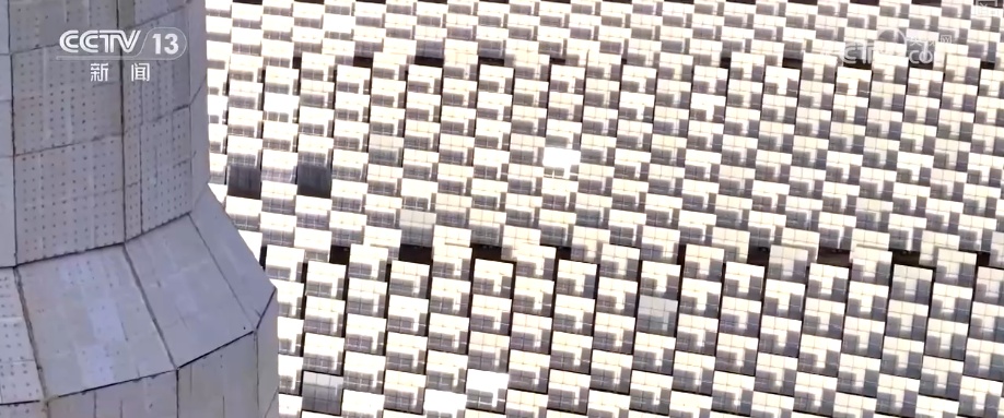 园区中,23000多面定日镜如同一个个精准的“追光者”,通过智能控制系统实时追踪太阳轨迹,将分散的太阳光集中反射到高达200多米的吸热器上,再通过大容量熔盐储热系统,实现24小时连续稳定供电。