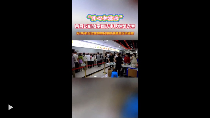 10月1日上午,记者看到,在荣昌区政府机关食堂开门营业前,前往就餐的游客就已排起长队。