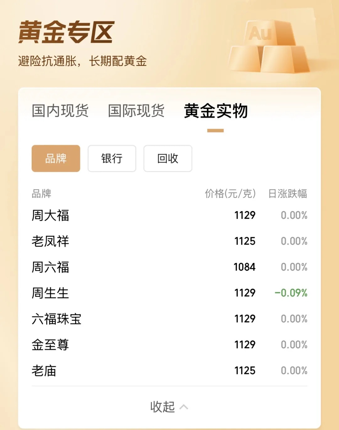 在国内金饰价格方面,10月2日,周生生、周大福、六福珠宝足金饰品标价均为1129元/克.
