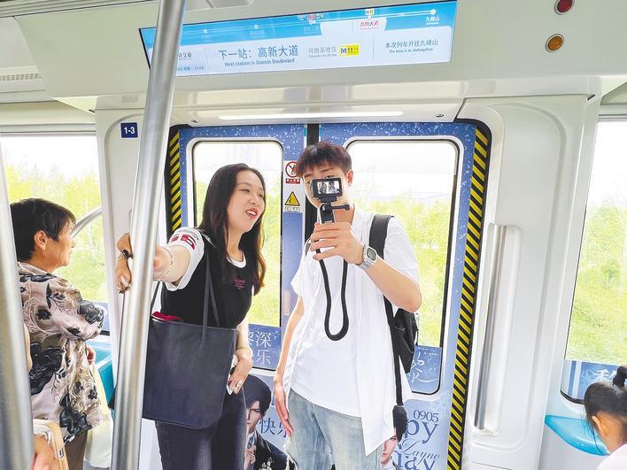 让孙宁晨难忘的,还有最后的空轨体验。凭“知音湖北”旅游年卡免费进站后,她特意选了一个透明的观景位。列车悬在10米高空启动后,只见脚下的绿树溪流与路面车流同步后退。