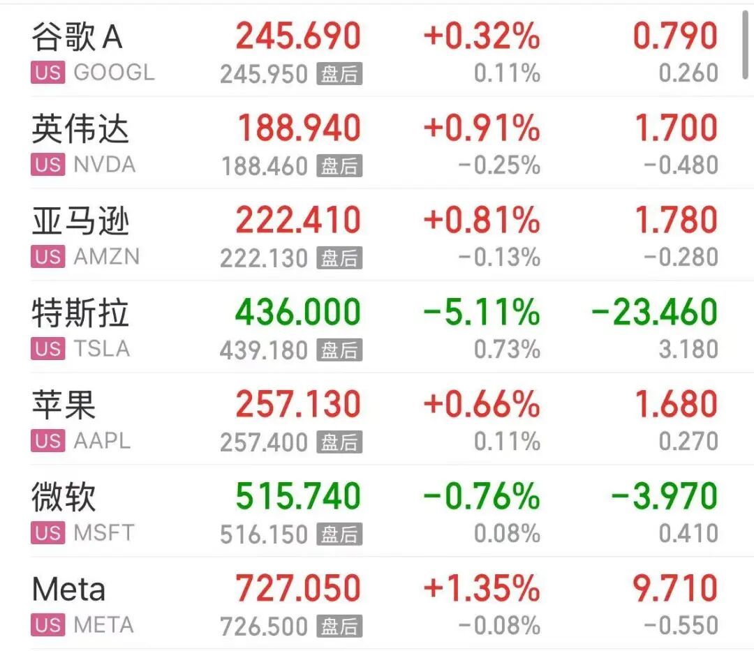 北京时间10月3日,美股三大指数集体收涨。大型科技股涨跌不一,Meta、英伟达、亚马逊、苹果、谷歌上涨,特斯拉下跌5.11%,市值蒸发约756亿美元(约合人民币5387亿元)。