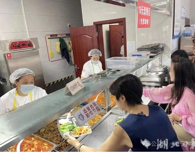 “我们特意将赤壁关刀鱼、鱼糕等作为主打菜,让游客一口吃出赤壁味道。同时推出2至15元的小碗菜,既丰富选择,也兼顾性价比。”赤壁市政府食堂负责人廖华清介绍,早在9月20日,团队就开始准备国庆中秋假期服务工作。为减少游客排队,食堂临时增聘8名工作人员,服务人员增至22人。此外,食堂新购500个食品级餐盘、1000套可高温消毒餐具及5000个降解餐盒,既保障食品安全,也提升出餐效率。