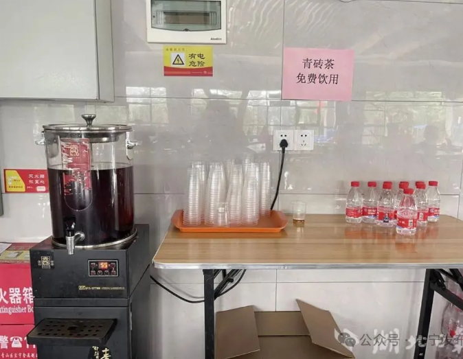 10月1日10时,国庆中秋长假第一天,一踏进赤壁市政府大院,“赤壁市政府机关食堂面向社会开放”的红色指引牌格外醒目。循着标识走向食堂,门口早有工作人员微笑相迎,热情导引入座。餐前服务已贴心就位,温润解渴的赤壁青砖茶、清冽甘甜的矿泉水可自由取用。