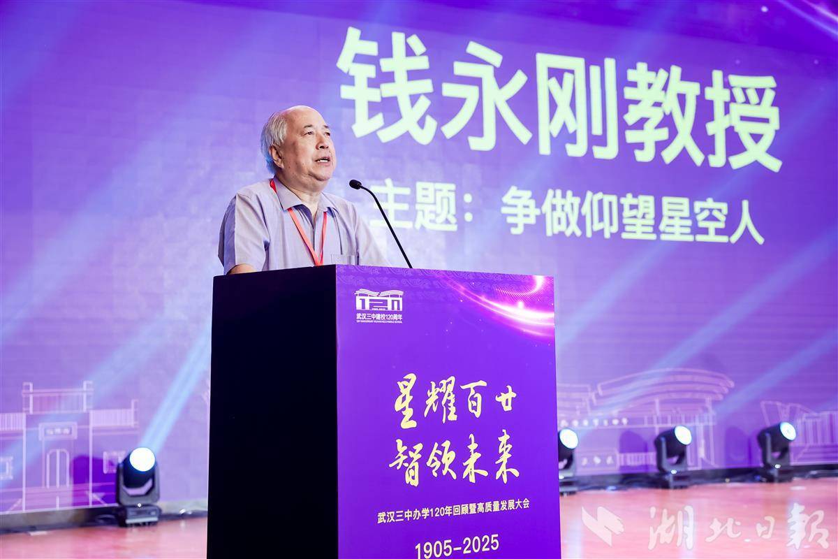 湖北日报讯(记者朱惠、通讯员黄璜、张玄)今年是钱学森归国70周年,作为湖北唯一获批创办“钱学森科技班”和“钱学森科技馆”的高中,10月3日,武汉市第三中学举办主题为“星耀百廿·智领未来”的办学120年回顾暨高质量发展大会,钱学森之子钱永刚教授第3次来到该校,与师生们面对面交流,用钱老的故事勉励大家“争做仰望星空人”。