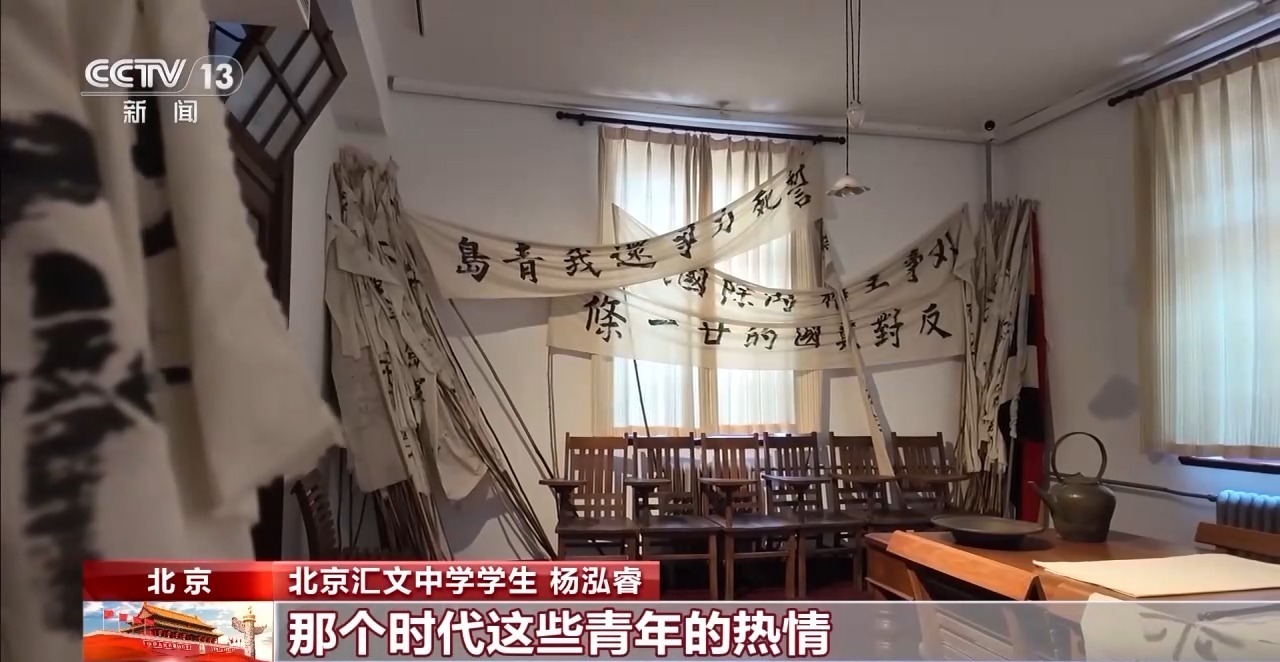 北京汇文中学学生 杨泓睿:看到这些标语,有一种磅礴的力量,站在这里我会更清晰地感受到那个时代青年的热情和一种求知的精神。