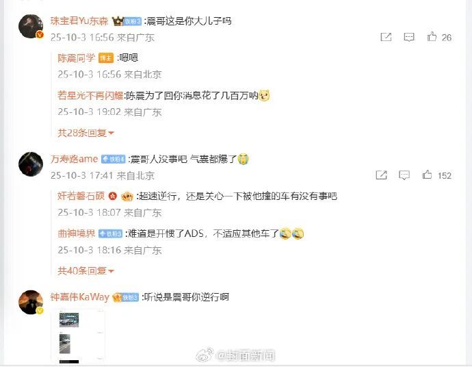 极目新闻记者注意到,10月3日下午4时54分,陈震还更新了一条微博,不少网友在评论区询问此事。截至当晚7时,陈震尚未在社交平台就此事发声。