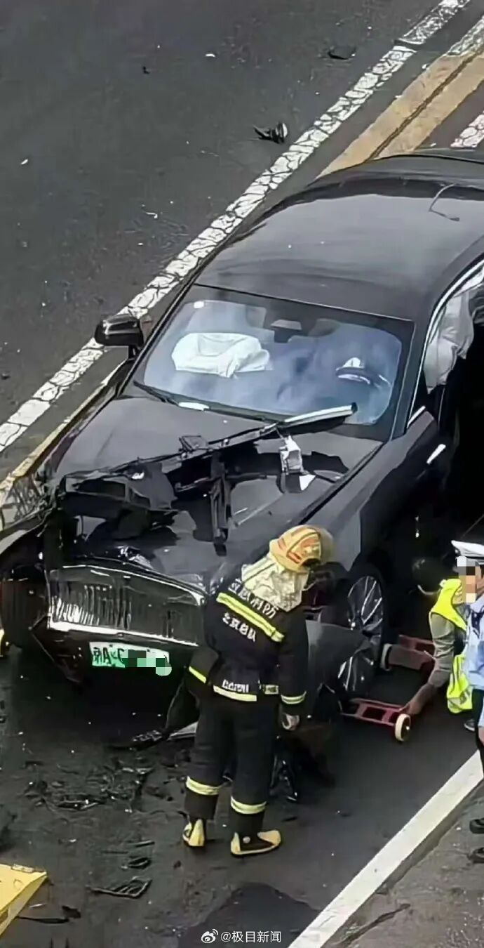 网传照片显示,一辆劳斯莱斯闪灵轿车停在公路上,车身损毁严重,安全气囊弹出。车外人员疑似知名车评人陈震。记者对比该车的车牌号,与此前媒体曝光的车评人陈震车辆为同一号牌。有网友称,该事故发生在万寿路。