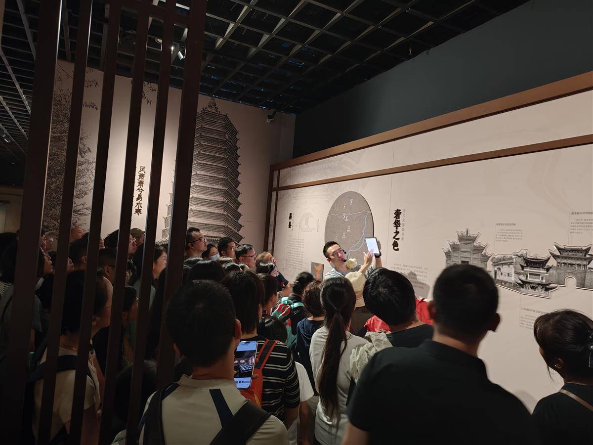 文博大V“宝藏猎人董臻”在展厅做专场导览(图源:武汉博物馆)