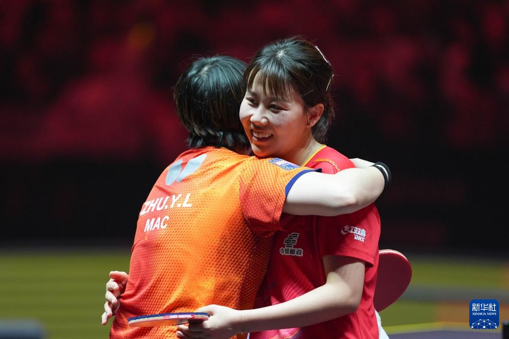 10月3日,陈幸同(右)与朱雨玲在赛后拥抱。