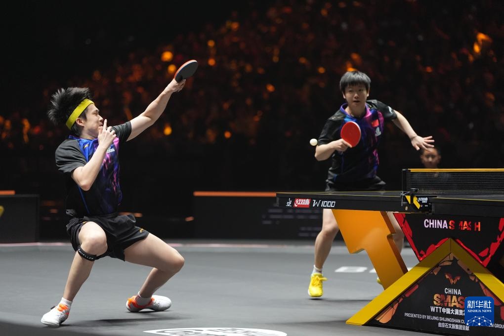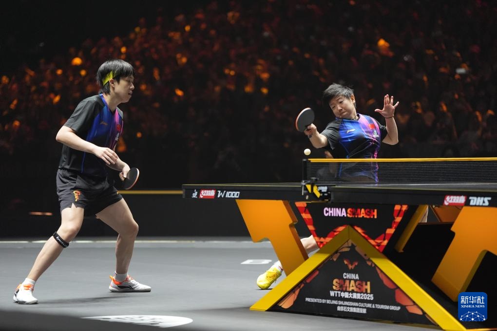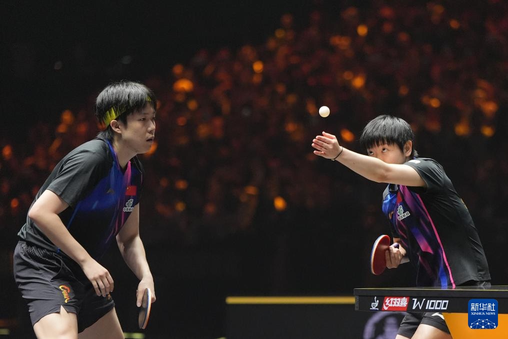 当日,在北京举行的2025年世界乒乓球职业大联盟(WTT)中国大满贯赛混合双打决赛中,中国组合王楚钦/孙颖莎对阵另一对中国组合黄友政/陈熠。