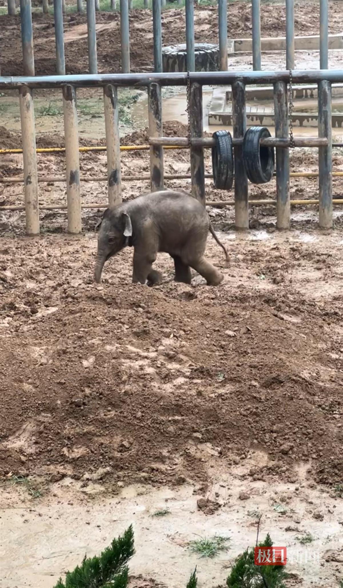 下午1时45分左右,小象和妈妈提前走出象舍。小象一出场,热烈的欢呼声不断,大家举起手机拍照,不愿意错过任何瞬间。这只“两三百斤的宝宝”活力四射,甩动象鼻子满场奔跑,时而玩玩轮胎玩具,时而在泥水坑里踩水,“营业”热情满满。记者还注意到,经过前几天被绊倒的圆木玩具时,它的一举一动显得小心翼翼,生怕再次摔倒。
