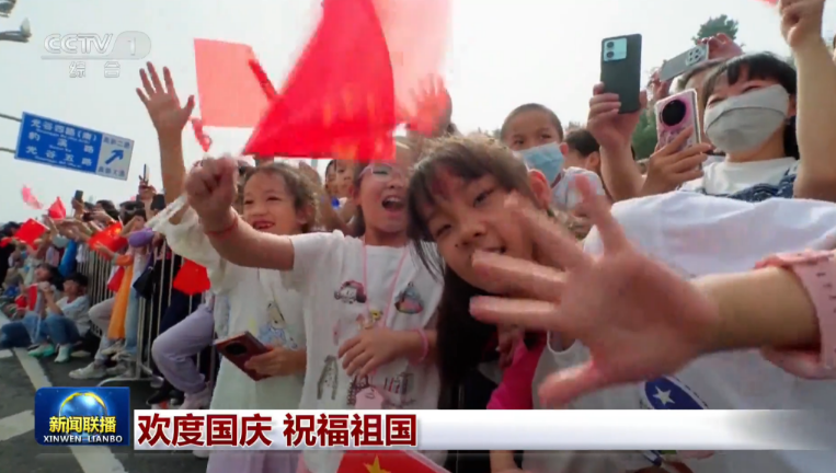 从两岁孩童到古稀老人,从附近居民到海外游客,现场十万多观众里,有家长把孩子举过头顶,有女生坐在男友肩上,大家脸上贴着国旗,手里摇着红旗,嘴里唱着“我和我的祖国”……