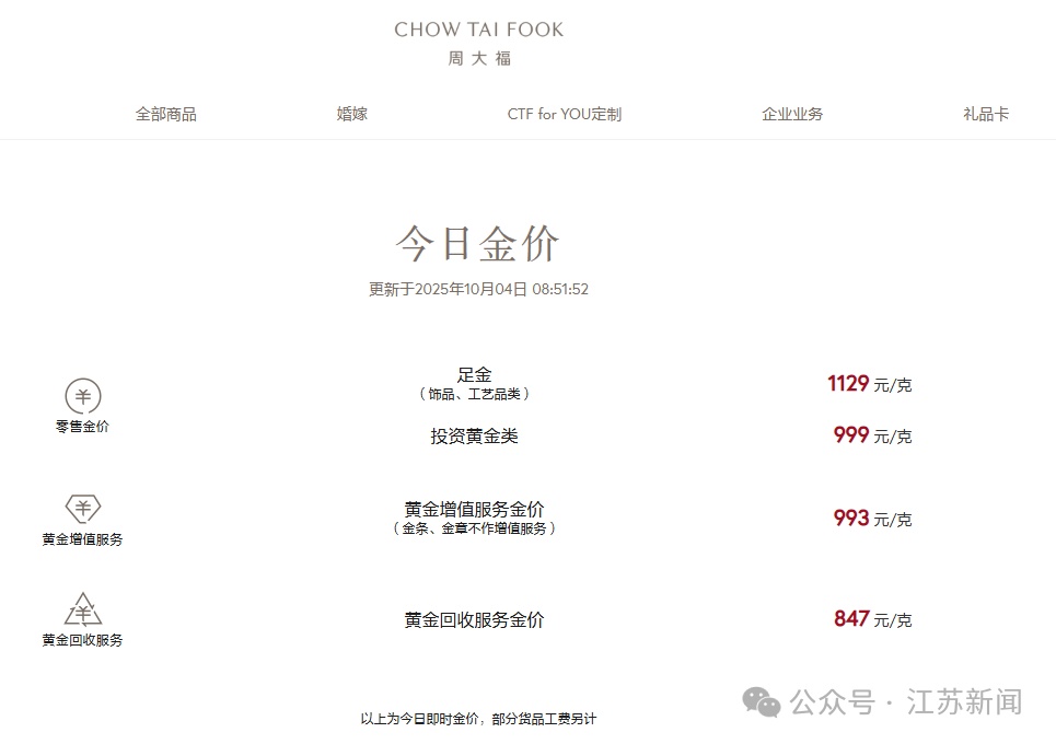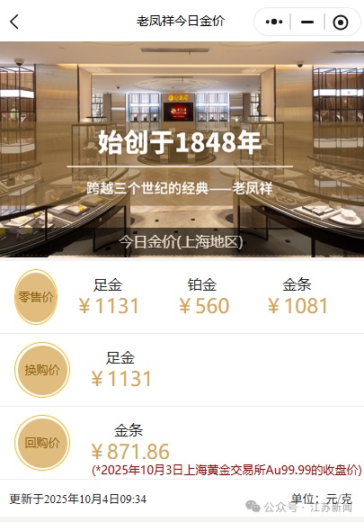 10月4日,国内多个金饰品牌金饰克价再创新高。