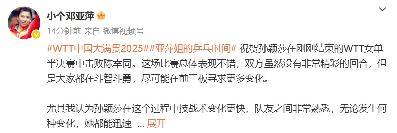 4日下午,邓亚萍发文点评这张比赛: