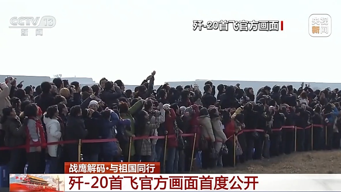 2011年1月11日下午,歼-20技术验证机从成都温江机场一跃而起,跑道一侧的研制人员欢呼呐喊,目送这架凝聚心血的战鹰飞向蓝天。