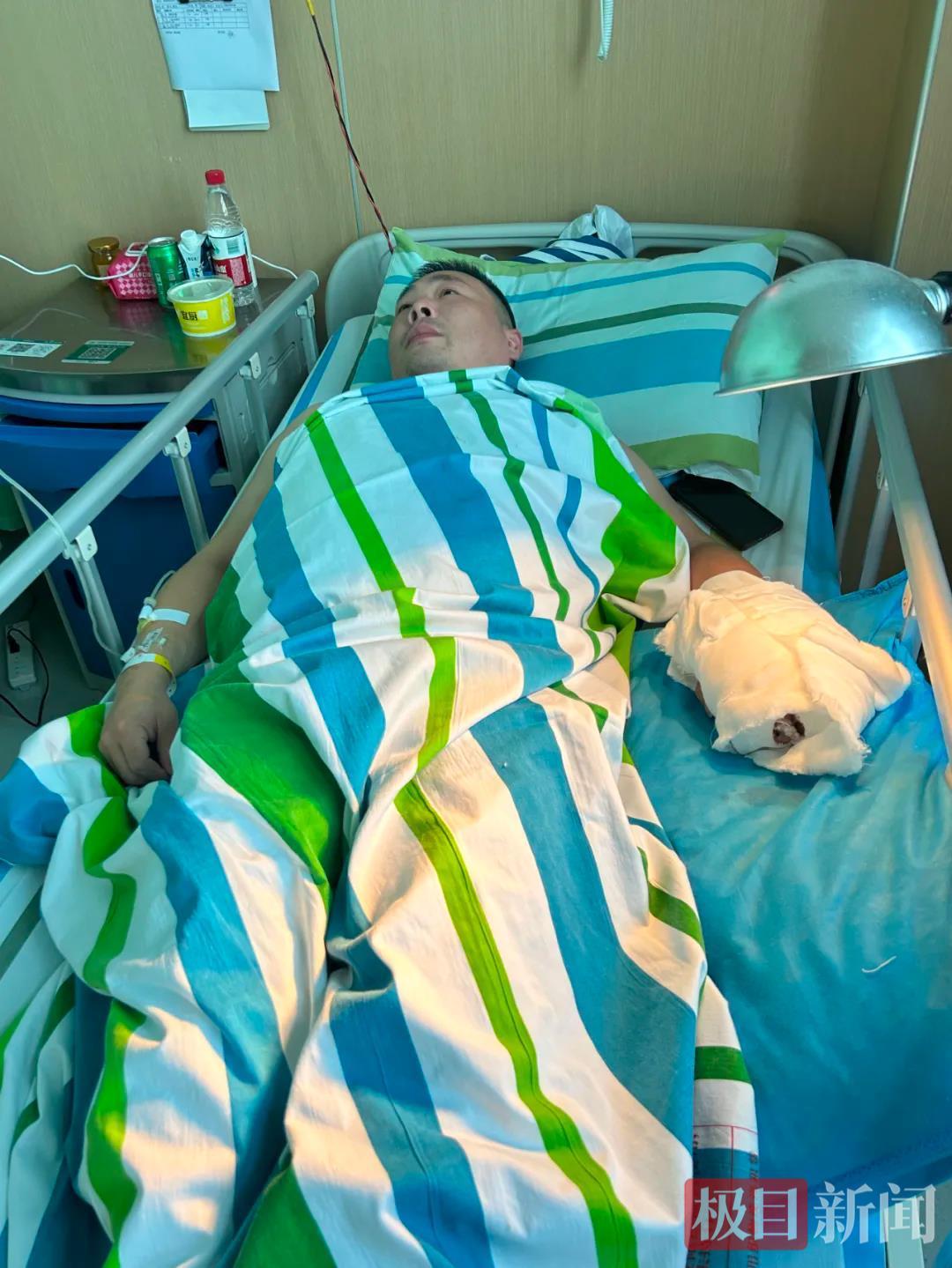 10月4日,宜昌市第一人民医院病房内,湖北省公安厅机关民警夏凡半卧在病床上,他的左手缠着厚厚的绷带,中指指尖渗出的血迹仍隐约可见。谈到两天前救人的惊险一幕,这位年轻民警说:“当时就一个念头,先把人救出来!”
