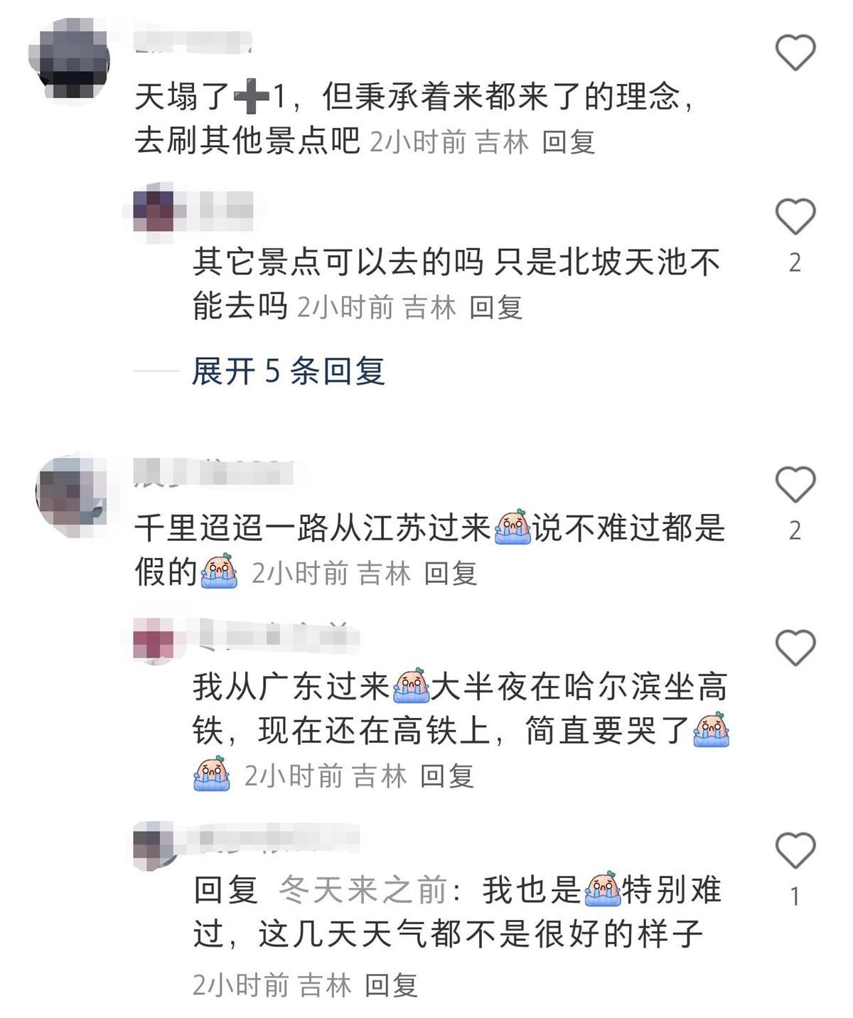 极目新闻记者注意到,在评论区,有不少来自福建、广东、江苏等南方省份的游客分享称,他们一早看到公告也很无奈,考虑去北景区瀑布、谷底森林等其他景点游玩,还有游客表示,鉴于长白山西景区今天开放,会临时买票去西景区。