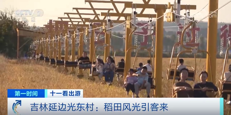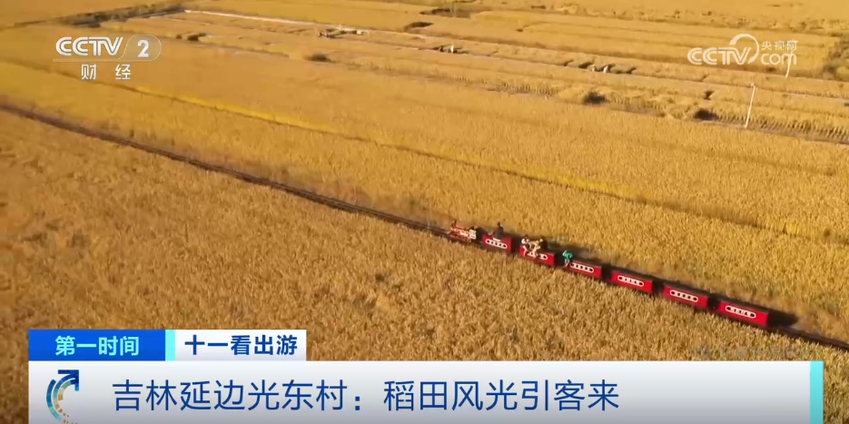 在吉林延边光东村,金黄的稻田迎来收割季。收割机在田间穿梭作业,与此同时,造型别致的稻田小火车缓缓穿行于稻浪间,低空缆车将田园风光尽收眼底,独特的游玩项目让游客们沉浸式感受乡村魅力。假期期间,光东村每日接待游客近2万人次,乡村民宿更是火爆,截至10月7日的客房均已提前订满。