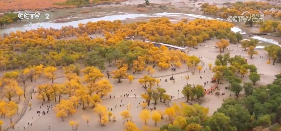 国庆中秋假期,内蒙古阿拉善盟额济纳旗的胡杨林陆续转黄、进入最佳观赏期,金秋胡杨美景吸引全国各地游客纷至沓来,领略大漠深处的醉人秋色。