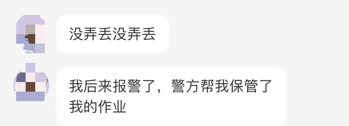 该网友称,她是一名初中生,她的包里面有化学、历史、英语和政治课的作业,还有英语书和历史书,书上都是笔记,“我国庆回来后(10月9日)就要月考,必须要复习。”她表示,“如果我书丢了我的月考就废了。”