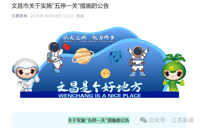 海南文昌宣布“五停”